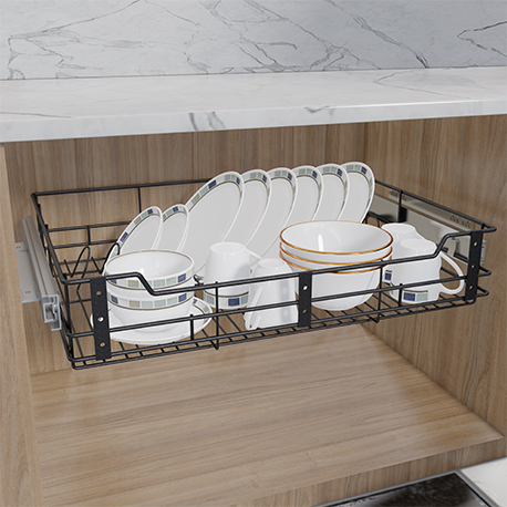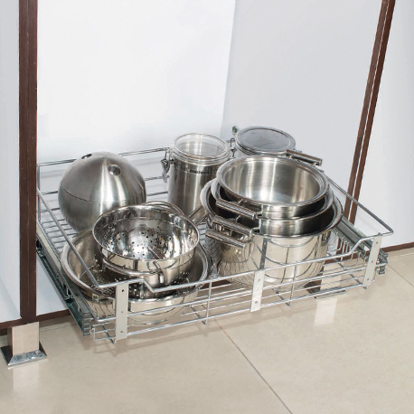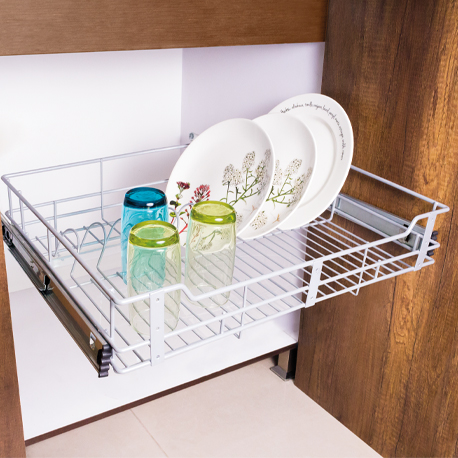 Además, nuestras canastas incluyen opciones para platos, ollas y hasta frutas, con estructuras resistentes y fáciles de instalar (solo tienes que atornillarlas). Algunas tienen rieles deslizables que facilitan el acceso, mientras que otras incorporan separadores, vajilleros y una bandeja escurridora para aprovechar mejor el espacio.