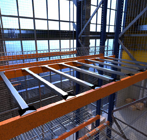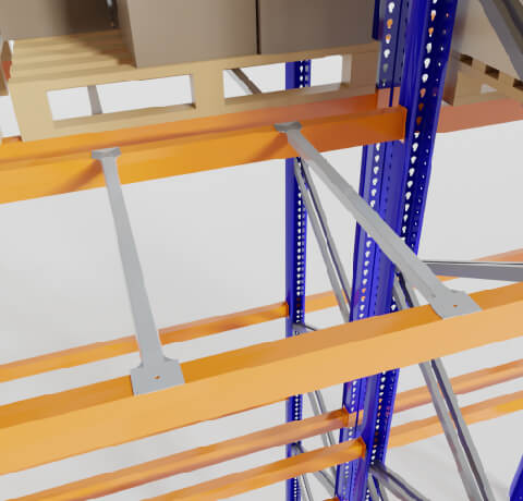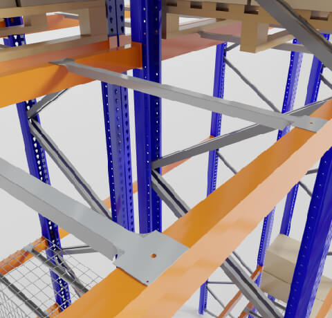 Travesaños de apoyo entre vigas, diseñados para reforzar resistencia y para colocar en su zona superior estibas de madera.