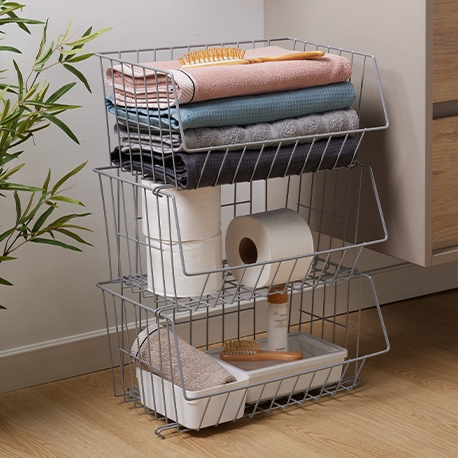Ahorra espacio con el organizador 3 Canastas apilables de Rejiplas, es multifuncional e ideal para espacios reducidos, perfecto para almacenar objetos en un espacio vertical y se puede ubicar en diferentes espacios de tu hogar y/o oficina. Sus canastas son ventiladas, inmunes a plagas y resistentes a la humedad.