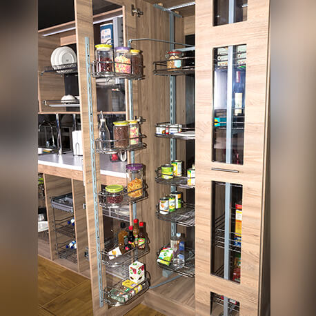 La Alacena abatible con 10 canastas para módulo de 45 cm de Rejiplas, es ideal para el almacenamiento de alimentos o utensilios de cocina. Te permite aprovechar mejor el espacio, tener todo a la vista y siempre a tu alcance. Tu cocina lucirá limpia, organizada y moderna. No incluye mueble en madera.