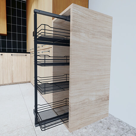 La Alacena sencilla de 4 canastas para módulo de 40 cm de Rejiplas, es un producto ideal para el almacenamiento de alimentos o utensilios de cocina. Nuestra alacena te permite aprovechar mejor el espacio, tener todo a la vista y siempre a tu alcance. Tu cocina lucirá limpia, organizada y moderna. No incluye mueble en madera.