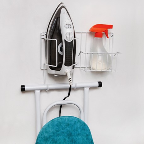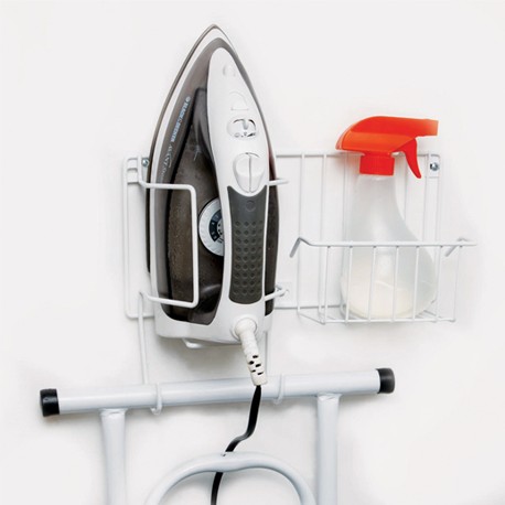 Nuestro auxiliar para plancha es útil y práctico, te permite guardar la plancha y optimizar espacio gracias a su práctico diseño que no solo almacena tu plancha sino también frascos o productos para el planchado. Además cuenta con 2 ganchos que sirven para colgar tu mesa de planchar verticalmente.