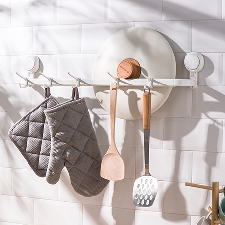 La Barra colgadera con chupas multisuperficie de Rejiplas, es un práctico organizador para colgar elementos según tu necesidad. Ideal para usar en cuarto útil, cocina, baño o zona de ropas, pegándola a la pared con sus chupas de alta fijación y sin necesidad de perforar. Para instalar: