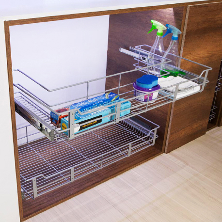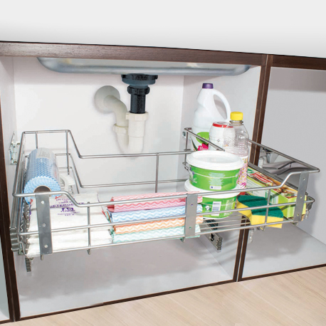 Con la Canasta bajo pozuelo classic cierre lento módulo de 90 de Rejiplas, puedes aprovechar el espacio del bajo pozuelo para tener tus utensilios en su lugar. Es ventilado y no retiene olores. Su sistema de rieles de extensión cierre lento aportan un cierre suave y controlado que cuida tus enseres y productos.