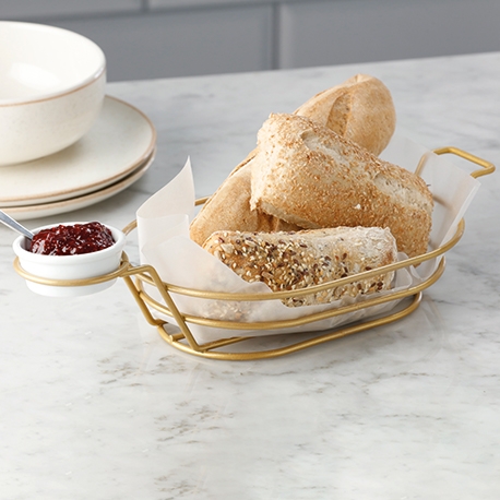 La Canasta con soporte salsera de Rejiplas es ideal para reuniones y eventos, trae en su diseño un espacio para aperitivos y espacio para que acomodes una salsera en su costado.