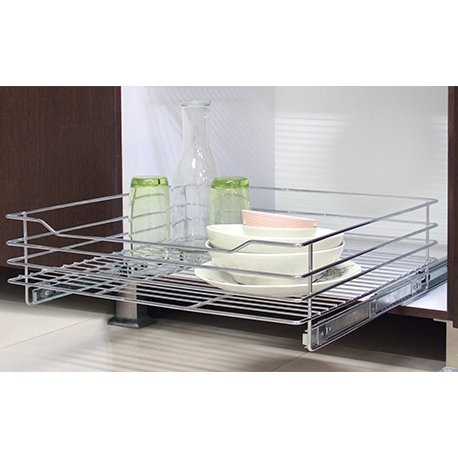 Conoce la Canasta riel a piso de 55 cm, te permite ordenar de una forma diferente los alimentos y utensilios de tu cocina, es de fácil uso y una ágil instalación. Con ella aprovecharás todos los espacios profundos de tu cocina, es resistente a la humedad y cuenta con varios acabados.