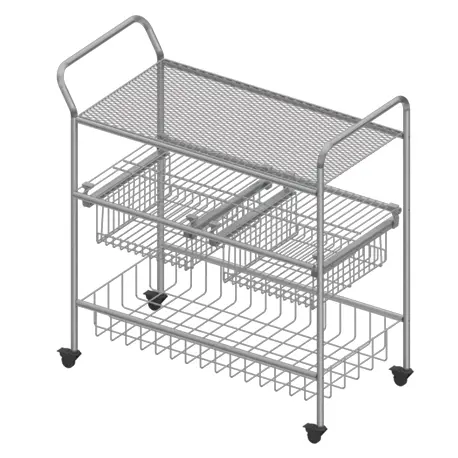 Descripción técnica Cuenta con 2 canastas deslizantes, 1 canasta fija y 1 entrepaño en mallado, los parales son ideales para su transporte, además se pueden utilizar de colgadero