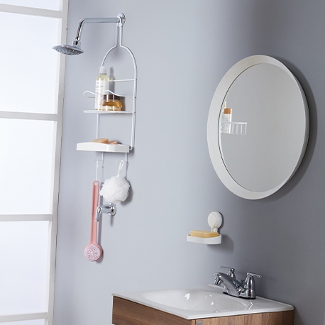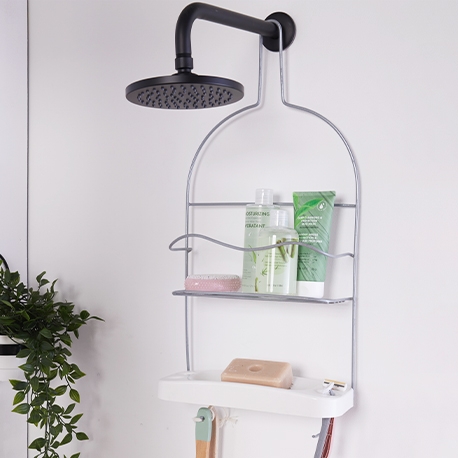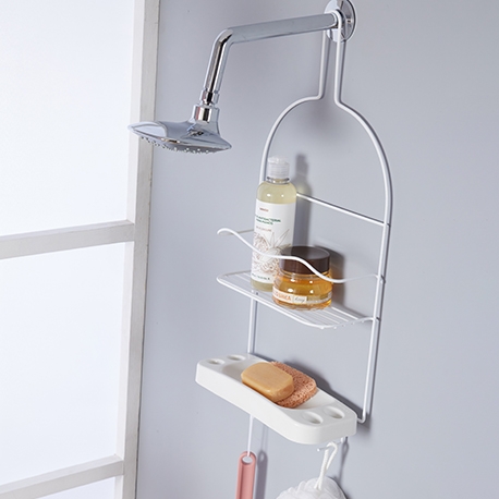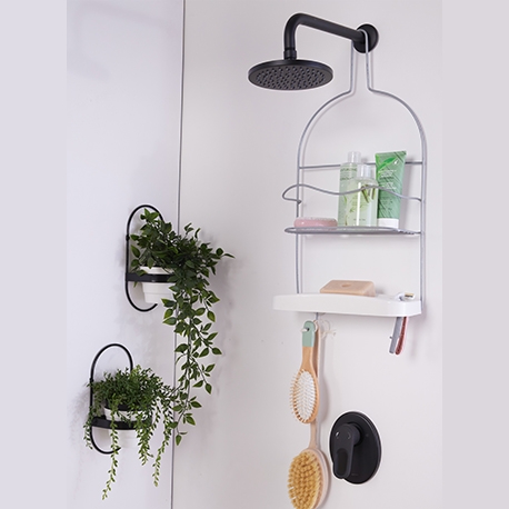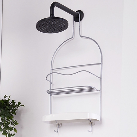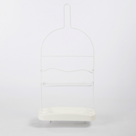 Descripción técnica Compartimientos: 2 niveles (1 con jabonera plástica), 2 ganchos colgaderos, 2 chupas (fijadas al producto, listas para usar)