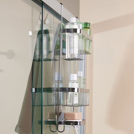 | Descripción técnica | Compartimientos: 2 canastas, 1 Jabonera, 2 ganchos colgaderos y 2 percheros. Apta para puertas de 4.5 cm de espesor. |