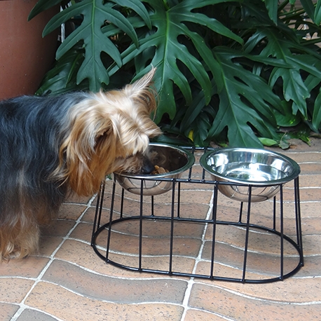 | Componentes | 1 Comedero ovalado pequeño (1 Estructura en acero plastificado, 2 bowls en acero inoxidable) |