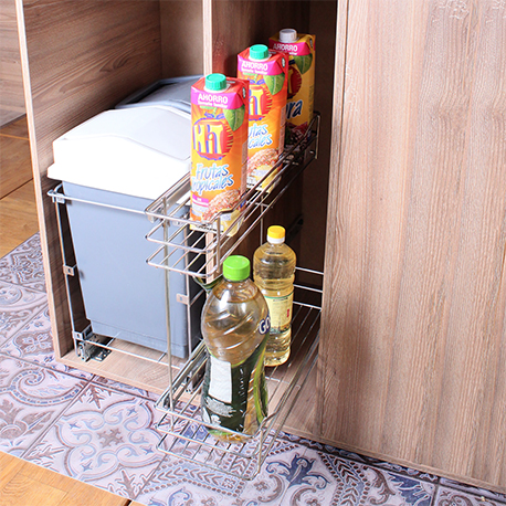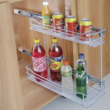La Despensa botellero 2 niveles con cierre lento de Rejiplas, te permite almacenar productos como, botellas, enlatados, condimentos y productos de mercado en general. Al tener sistema de rieles el acceso a lo que hay allí almacenado es muy fácil, es un producto inmune a plagas, es ventilado y de excelente calidad.