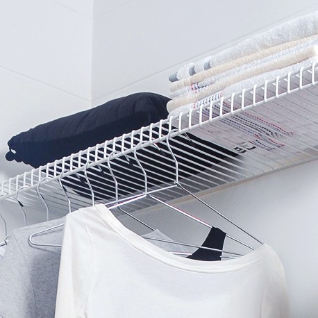 El Entrepaño en rejilla permite mantener la ropa, alimentos, accesorios y demás, libres de humedad gracias a su diseño ventilado que facilita la circulación del aire. Es perfecto para usarlo en clóset, vestier, zona de ropas o despensa. ¡Adáptalo de manera práctica a tus espacios!