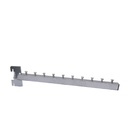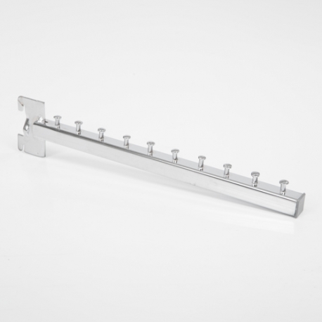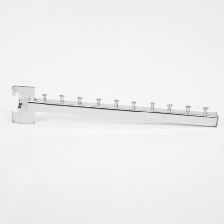 Esta ganchera industrial con sistema de fijación tipo cremallera con perfil cuadrado recto, te ayuda a organizar y exhibir tus productos de forma práctica, segura y visible en los puntos de venta. Se fija fácilmente en las cremalleras de 60 cm cód. 1541, 100 cm cód. 1543, 150 cm cód. 1546 o de 180 cm cód. 1548.