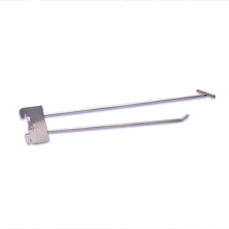 Ganchera industrial con porta precios con sistema de fijación tipo cremallera te ayuda a organizar y exhibir tus productos de forma práctica, segura y visible en los puntos de venta. Se fija fácilmente en las cremalleras de 60 cm cód. 1541, 100 cm cód. 1543, 150 cm cód. 1546 o de 180 cm cód. 1548.