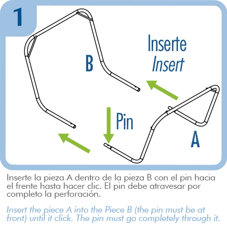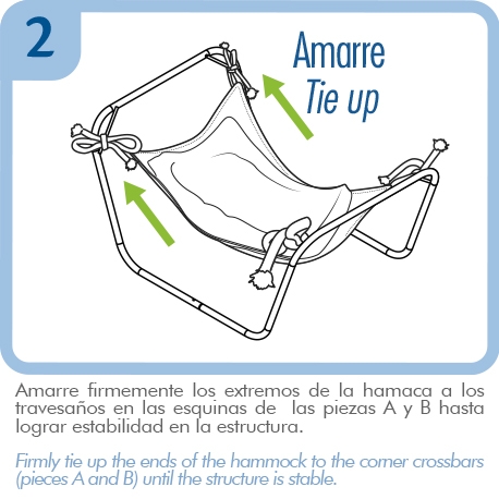 | Componentes | 1 Soporte para hamaca en tubería; 1 hamaca en tela acolchada con cierre color azul. |