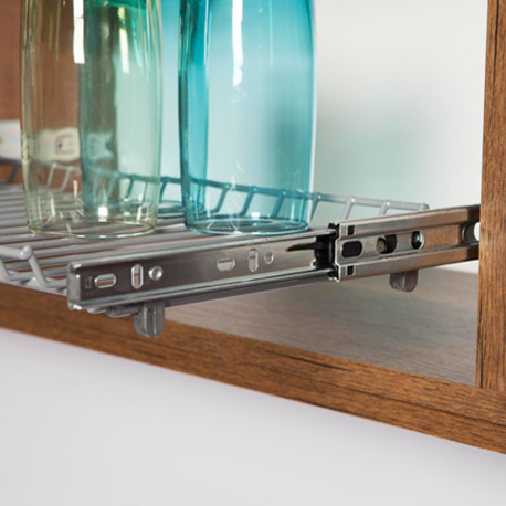 Componentes Incluye: Estructura metálica locero y vajillero de 50 cm, 2 pares de rieles de extensión y tornillos.