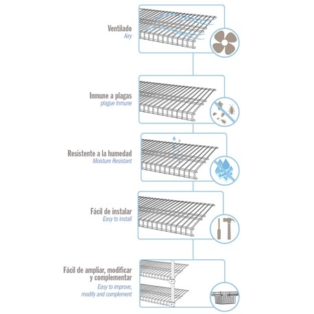 Es ajustable a espacios de 1 a 1.5 m. Es fácil de instalar, ventilado, inmune a plagas y resistente a la humedad.