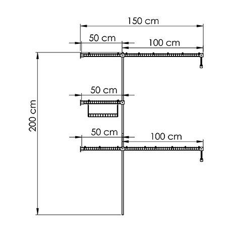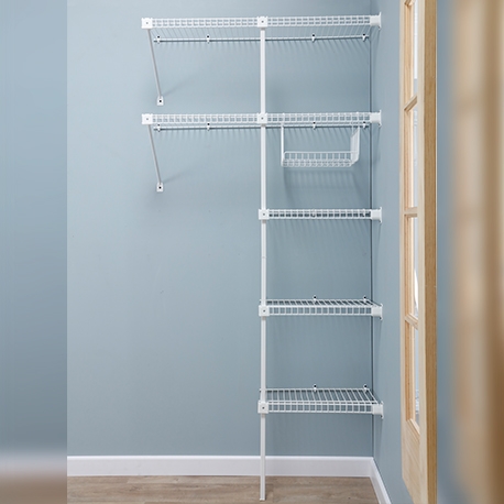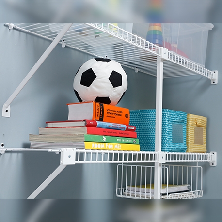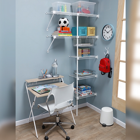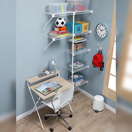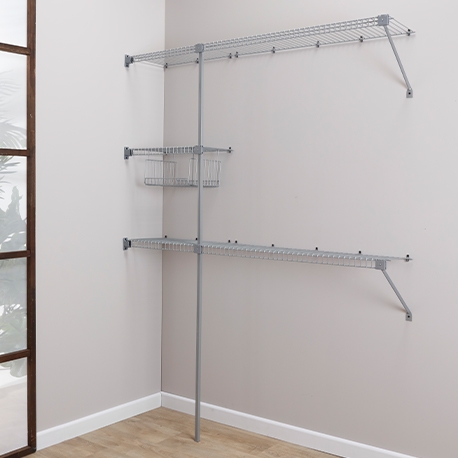 | Componentes | 3 Entrepaños Ganaespacio® 50x30 cm | 2 Entrepaños Ganaespacio® 100x30 cm| 2 Soportes diagonales para entrepaño de 30 cm de profundidad| 1 Canasta colgante| 2 Parales de 100 cm | Ver datos adicionales : topes, tornillos, chazos, escudos, soportes. |