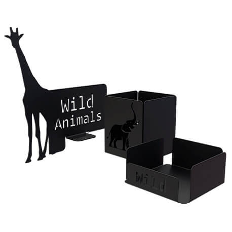 Pensando en facilitar tu día a día, en Rejiplas diseñamos este Kit animales salvajes que le dará un toque de orden, estilo y funcionalidad a tu espacio de trabajo o estudio. Está compuesto por 3 piezas: 1 Porta lápices, 1 Base para post it y 1 Separador de libros. Fáciles de armar.