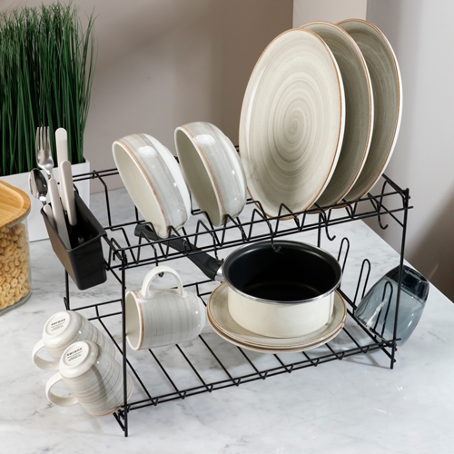El Locero Italiano 2 niveles con cubiertero de Rejiplas, es un útil organizador de vajilla. Puedes ubicar platos, vasos, pocillos, recipientes y cubiertos. Es fácil de armar y permite ahorrar espacio a la hora de almacenarlo por ser desarmable. Tiene compartimientos para: