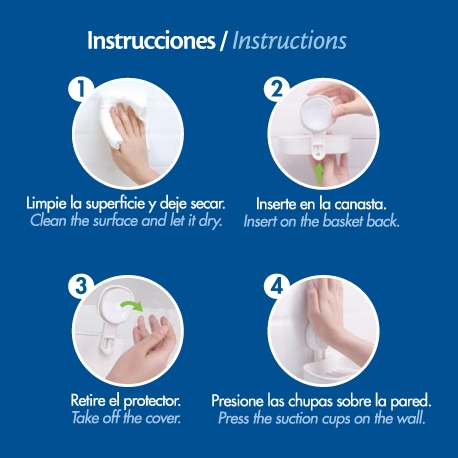 La Mini canasta con chupas multisuperficie de Rejiplas, es el mejor complemento para tu baño, cocina o donde más la necesites, ya que sus chupas de alta fijación permiten fijarla a casi cualquier superficie y sin necesidad de perforar. Para instalar: