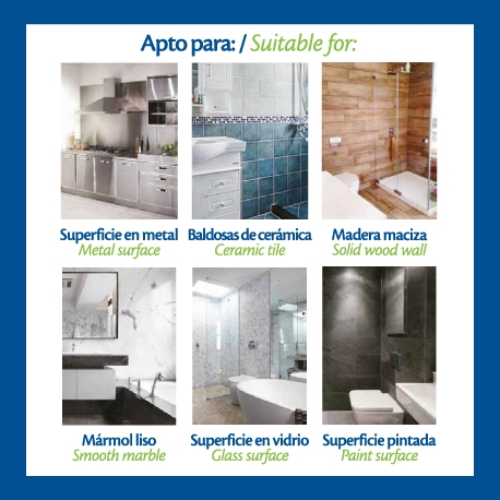 | Observaciones | No funciona en superficies porosas, rugosas, craqueladas, irregulares o con tratamiento de textura. Los elementos decorativos no se incluyen. No utilizar detergentes clorados u otros elementos abrasivos para su limpieza. |