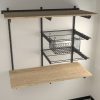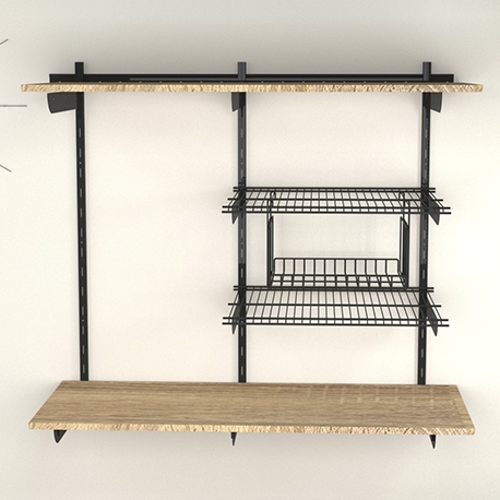 | Componentes | 2 Entrepaños en madera 100 x 42 cm | 2 Entrepaños Platinum 50 x 42 cm | 10 Brazos Mix de 40 cm | 1 Canastilla colgante|3 Cremalleras de 90 cm |1 Soporte guía de 100 cm | accesorios de instalación. |