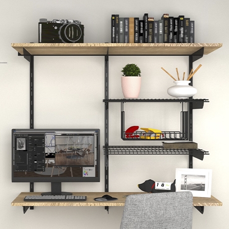 Trabajar y/o estudiar con estilo y comodidad si es posible con el Mueble - Escritorio Mix&Match de Rejiplas. Desarrolla tu espacio de trabajo o estudio ideal, ya sea en tu hogar o empresa. Este mueble te permite ajustar con facilidad la altura de los entrepaños según tu necesidad. Además puedes complementarlo posteriormente con los accesorios MIX&MATCH.