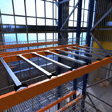 Travesaños de apoyo entre vigas, marca Rejiplas, diseñados para reforzar resistencia y para colocar en su zona superior estibas de madera.