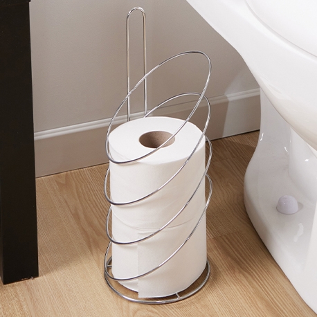 Con el Porta papel higiénico Spiral de Rejiplas podrás almacenar hasta 3 rollos de papel higiénico en tu baño. Su hermoso diseño hará que tu baño resalte con estilo.