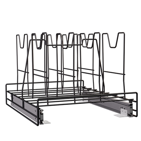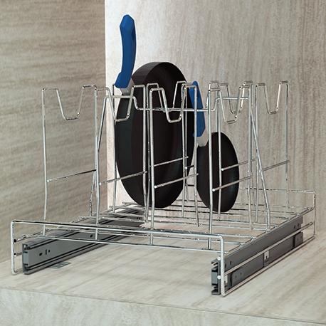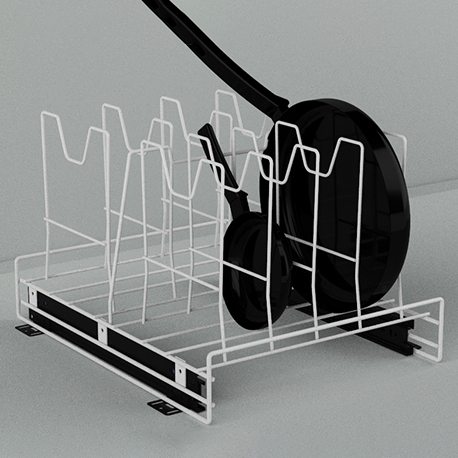 El Porta sartenes riel a piso con cierre lento de Rejiplas es funcional y práctico para conservar los sartenes en orden, buen estado y a la mano. Su sistema de rieles cierre lento te permite acceder con facilidad y cuidado a lo almacenado.