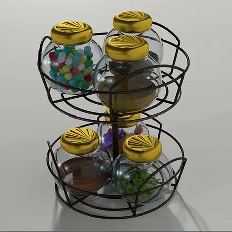 El rack condimentero 2 niveles de Rejiplas, es organizador de mesa con 2 niveles ideal para almacenar condimentos/especias, frutas y demás elementos de cocina que necesites a la mano. El segundo nivel es giratorio.