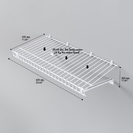 Optimiza espacios con la Repisa en rejilla Modular de 60 x 30 cm. Útil y multiusos, siendo práctica para usarla en el closet, la habitación, la zona de ropas, la cocina o el cuarto útil. Fácil de instalar y complementar. Elaborada en acero plastificado inmune a plagas y resistente a la humedad.