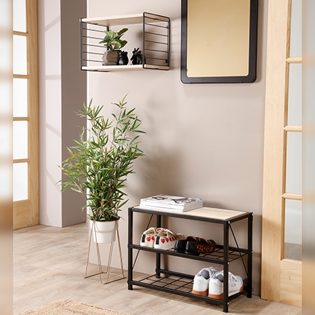 | Material / Acabado | Acero pintado (pintura electrostática) y madera Standard AGLOMERADA DE 15 mm, con recubrimiento melamínico decorativo color rustic sand por sus dos caras |