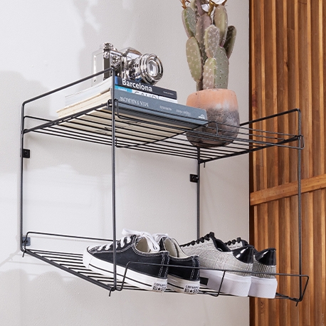La Repisa organizadora mixta 2 niveles de Rejiplas será tu mejor aliada para conservar tus espacios limpios y ordenados. Utilízala al ingreso de tu hogar o donde más la requieras, para organizar tus zapatos y otros elementos a los que luego podrás realizarle un adecuado proceso de limpieza.