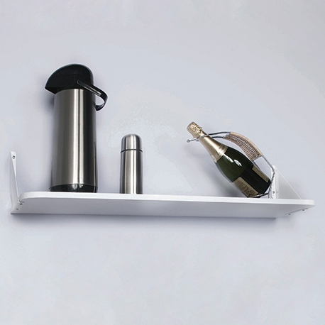 | Componentes | 1 Tabla de madera aglomerada con recubrimiento en resina melamínica y 2 soportes metálicos (pie de amigo) de 18 cm. |