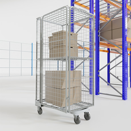 Jaulas metálicas rodante que se caracteriza por facilitar el transporte, la distribución y el almacenamiento de la mercancía, sin riesgos y ahorrando costos de transporte.
