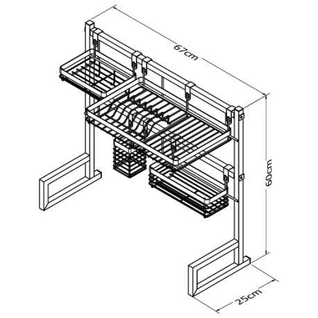 | Componentes | 1 Soporte auxiliar lavaplatos, con los siguientes accesorios colgantes: 1 Escurridor de platos · 1 Cubiertero · 1 Canasta con ganchos · 1 Canastilla multiusos. |