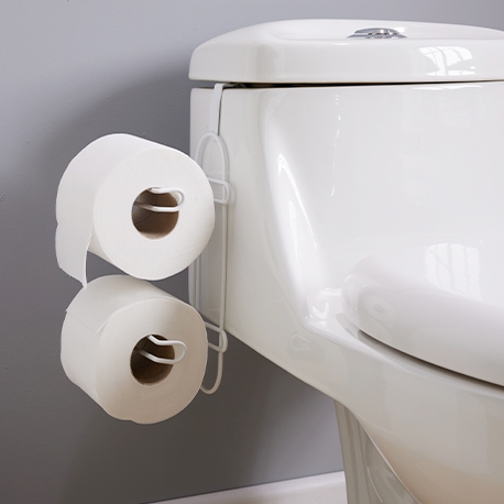 El Soporte doble de papel higiénico de Rejiplas, es práctico y te ayuda a optimizar el espacio del baño, ya que se instala en el tanque del sanitario y cuenta con espacio para dos rollos de papel higiénico.