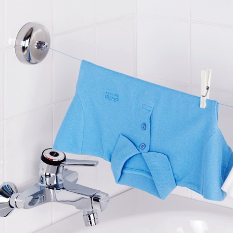 El Tendedero 1 cuerda de 2.5 metros de longitud de Rejiplas, es funcional, resistente a la humedad gracias a su carcasa de acero inoxidable, se adapta al espacio y es poco visible cuando no está en uso. Su pequeño tamaño lo hace práctico e ideal para baños.