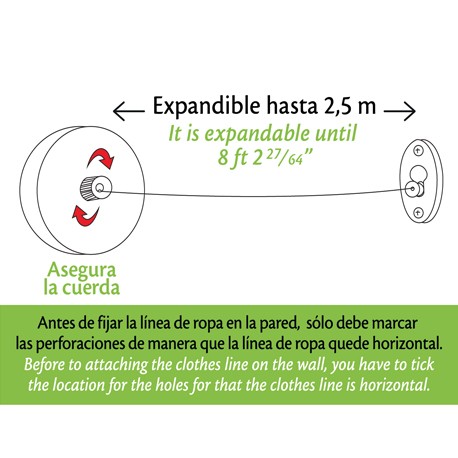 | Componentes | 1 und Tendedero 1 cuerda, 1 und Platina, 1 und Base Aguacatada, 4 und Chazos, 4 Tornillos Cabeza avellanada 8x1 |
