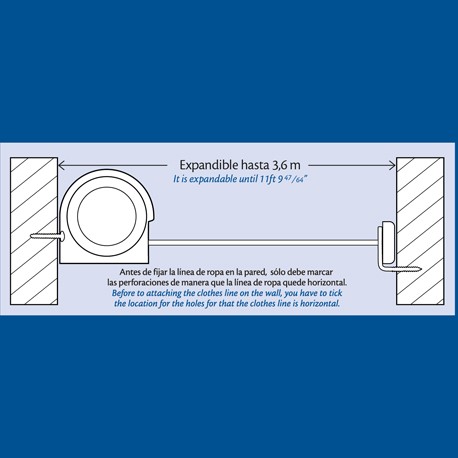 Descripción técnica Tendedero automático 6 cuerdas de 3,6 m cada una longitud útil para secado: 21,6 metros.