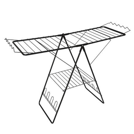 | Capacidad de carga | 25 kg en total, 9 kg en cada ala, 2 kg en cada escurridor de zapatos y 3 kg en la rejilla de la base. Advertencia: Para garantizar una buena estabilidad del producto ubique siempre la misma cantidad de prendas en cada ala. |
